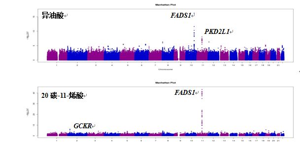 圖1: 單不飽和脂肪酸水平的全基因組關聯分析曼哈頓圖?