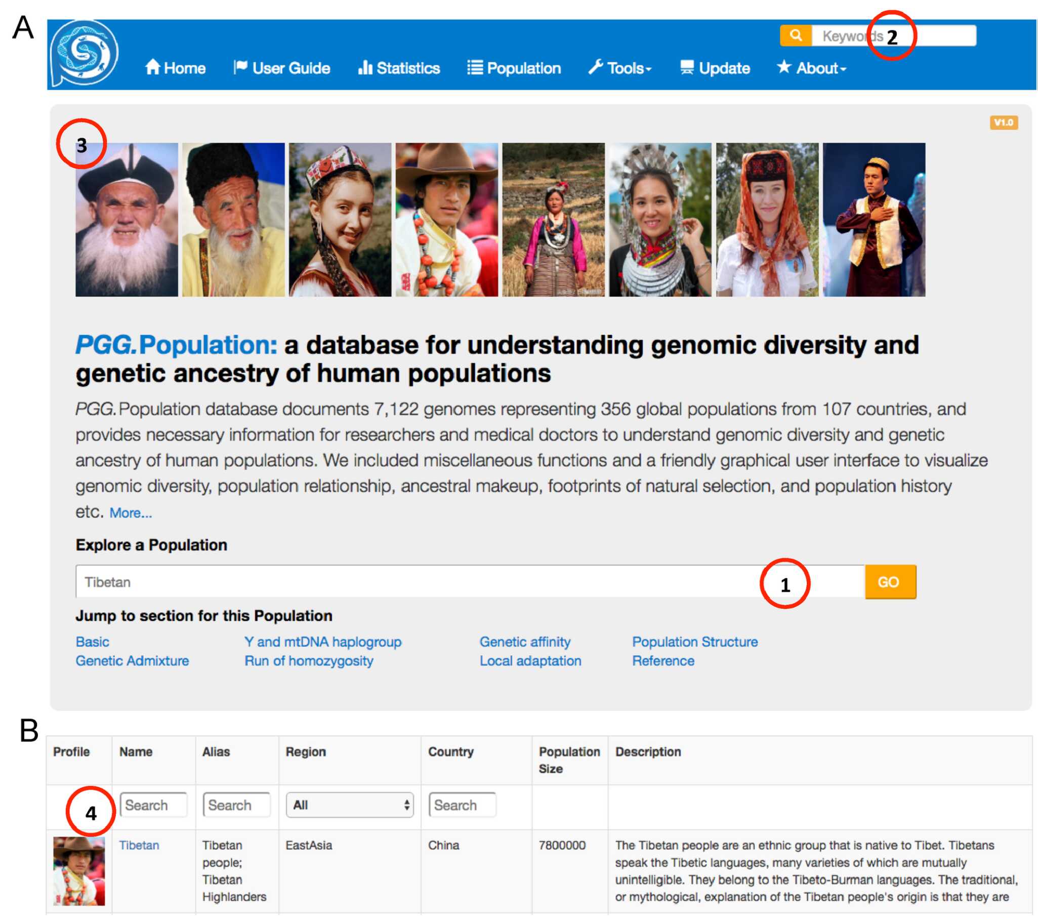 PGG.Population數據庫網站主界面