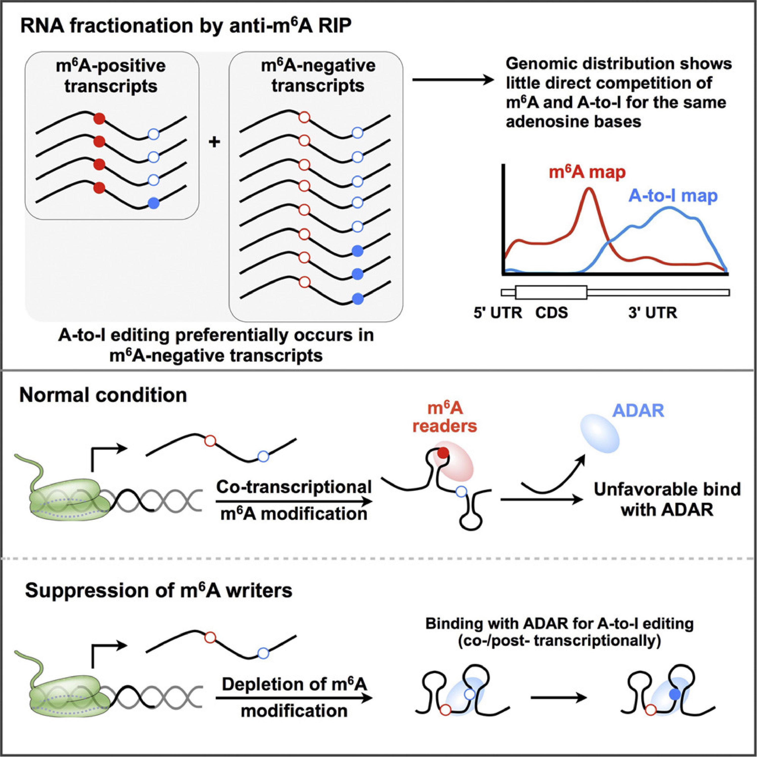 圖:m6A修飾對(duì)A-to-I編輯的負(fù)向調(diào)控作用及其機(jī)制