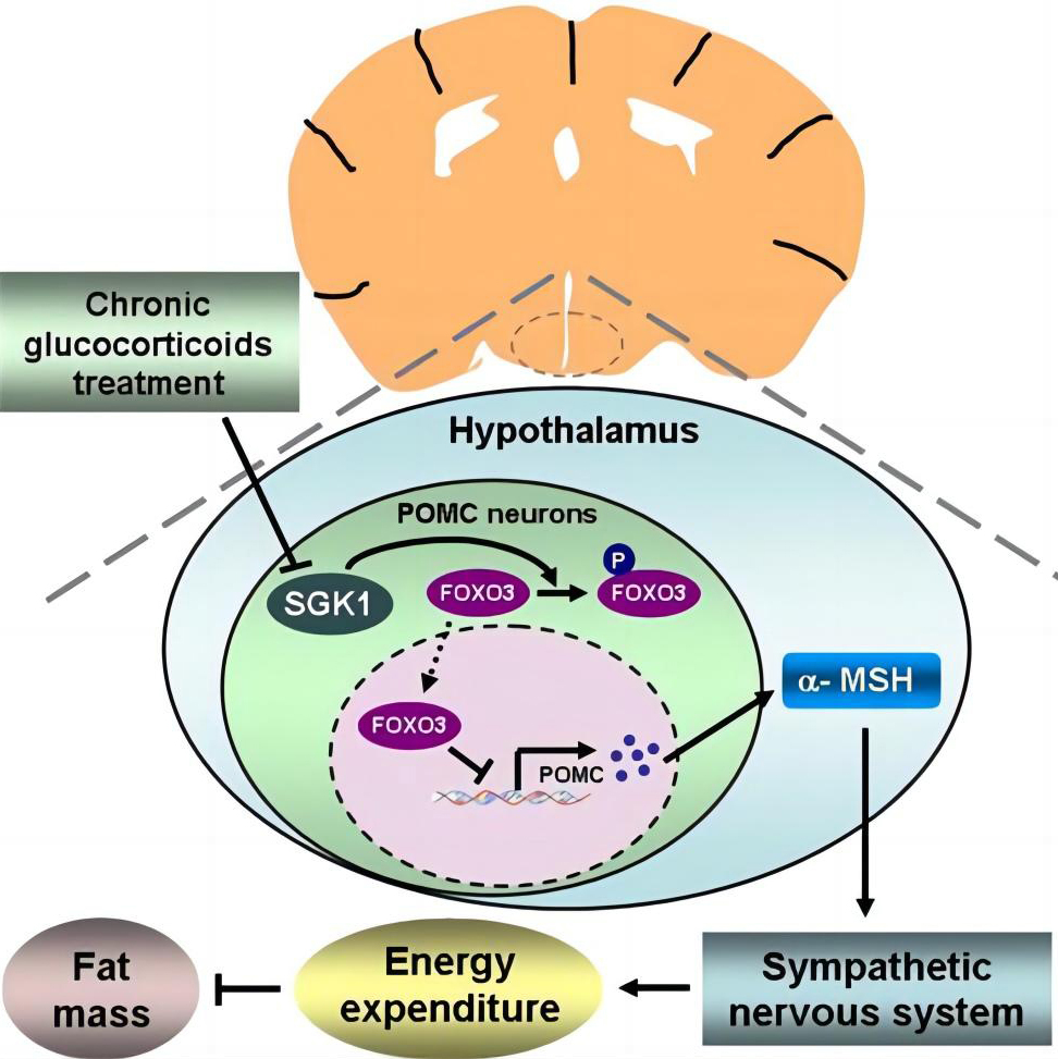 圖:下丘腦POMC神經(jīng)元SGK1/FOXO3信號調(diào)控慢性糖皮質(zhì)激素引起的肥胖