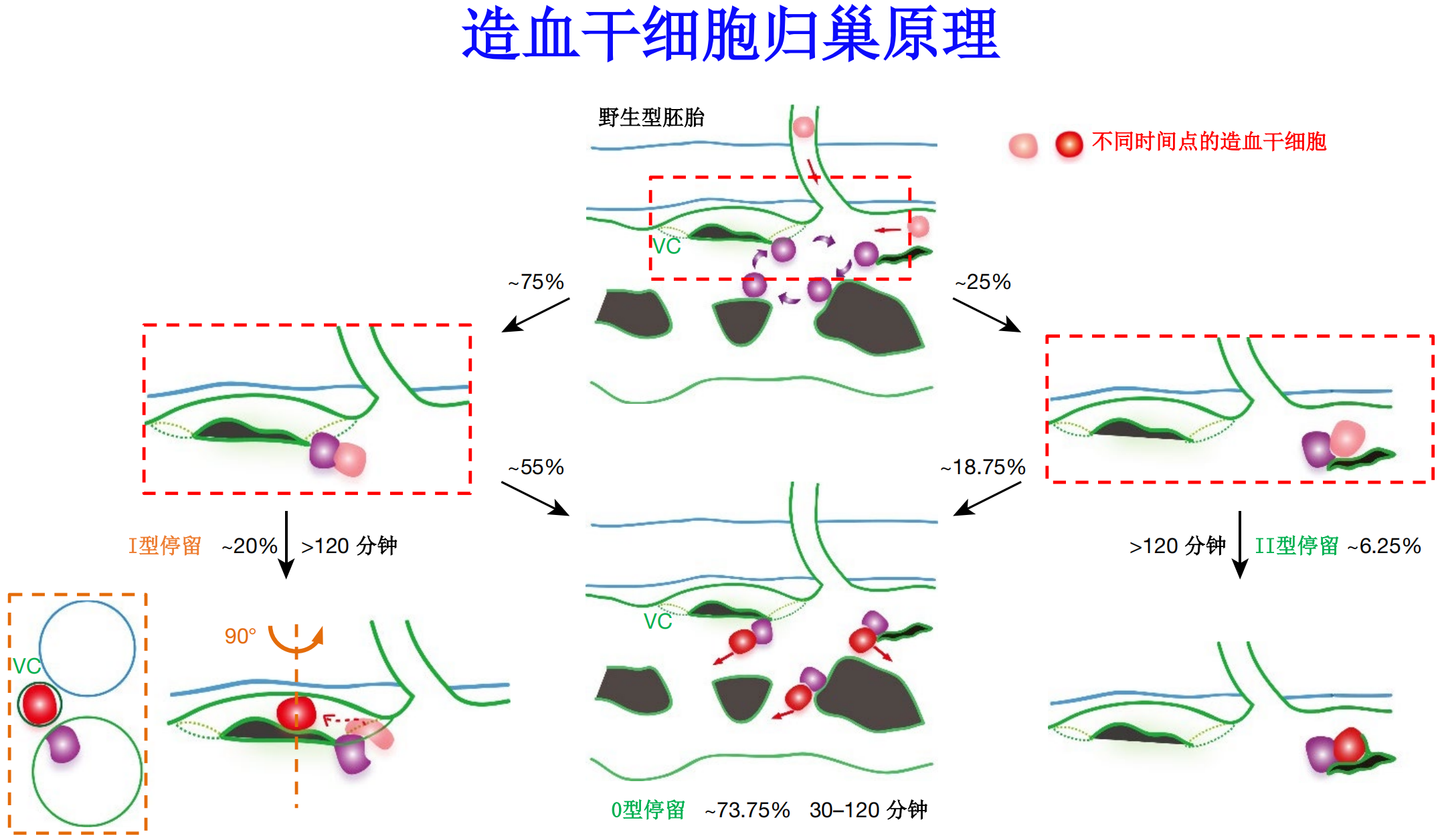 (紅色代表造血干細胞,藍色代表動脈,綠色代表靜脈。)