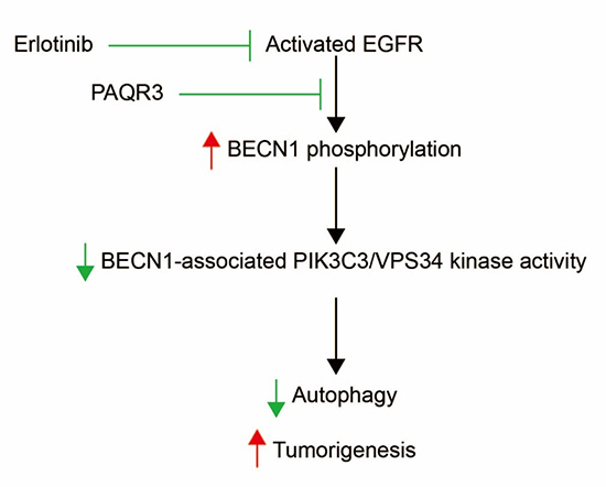 中國科學院上海營養與健康研究所陳雁課題組曹倩倩博士生等經過研究發現孕酮和脂聯素受體3(PAQR3)調控NSCLC細胞自噬和增殖的新機制。PAQR3作為抑癌基因,在多種人類癌癥中表達降低。在這項研究中,研究人員在細胞和動物水平發現PAQR3抑制多種NSCLC細胞的生長。同時,發現PAQR3作為重要的自噬調節蛋白能夠促進厄洛替尼誘導的NSCLC細胞自噬的發生。進一步的機制探索發現抑制自噬可以完全阻斷PAQR3對NSCLC細胞增殖的抑制作用,表明自噬是介導PAQR3抗腫瘤作用的關鍵節點。因此,該研究首次揭示了PAQR3對小細胞肺癌的抑瘤活性依賴于細胞自噬。在臨床實踐中,厄洛替尼或吉非替尼可用于NSCLC的治療,基于PAQR3調控肺癌細胞自噬的這一特征,調控PAQR3的功能有可能增強這些藥物的抗腫瘤活性。