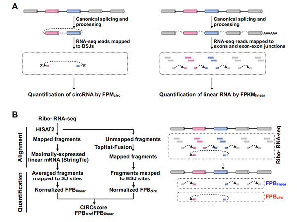 圖1: CIRCexplorer3-CLEAR分析新流程用于環形RNA與線形RNA直接定量比較