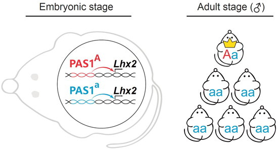 圖1 PAS1-Lhx2 體系調(diào)控羊膜動(dòng)物社會(huì)階層形成的小鼠模型