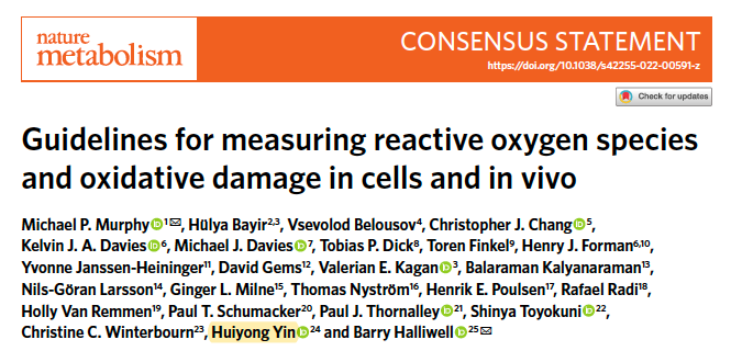 中科院上海營(yíng)養(yǎng)與健康研究所尹慧勇研究員受邀參與制定活性氧ROS(Reactive Oxygen Species)及氧化損傷的體內(nèi)、體外檢測(cè)的國(guó)際指南,與來(lái)自美國(guó)、英國(guó)、丹麥、俄羅斯、德國(guó)、卡塔爾、日本、瑞典、新西蘭、烏拉圭、中國(guó)、新加坡等25位氧化應(yīng)激領(lǐng)域的國(guó)際著名學(xué)者一起,在國(guó)際知名學(xué)術(shù)期刊Nature Metabolism在線發(fā)表了題為“Guidelines for measuring reactive oxygen species and oxidative damage in cells and in vivo”的文章。