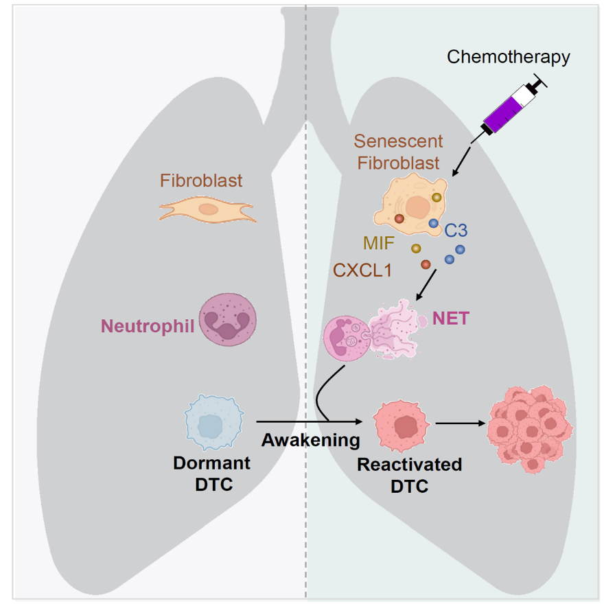 圖:化療喚醒肺部休眠乳腺癌細胞示意圖