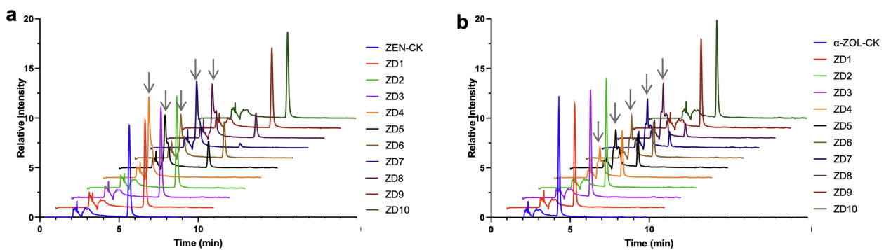 圖2:ZEN與ZOL及其降解產物的色譜圖