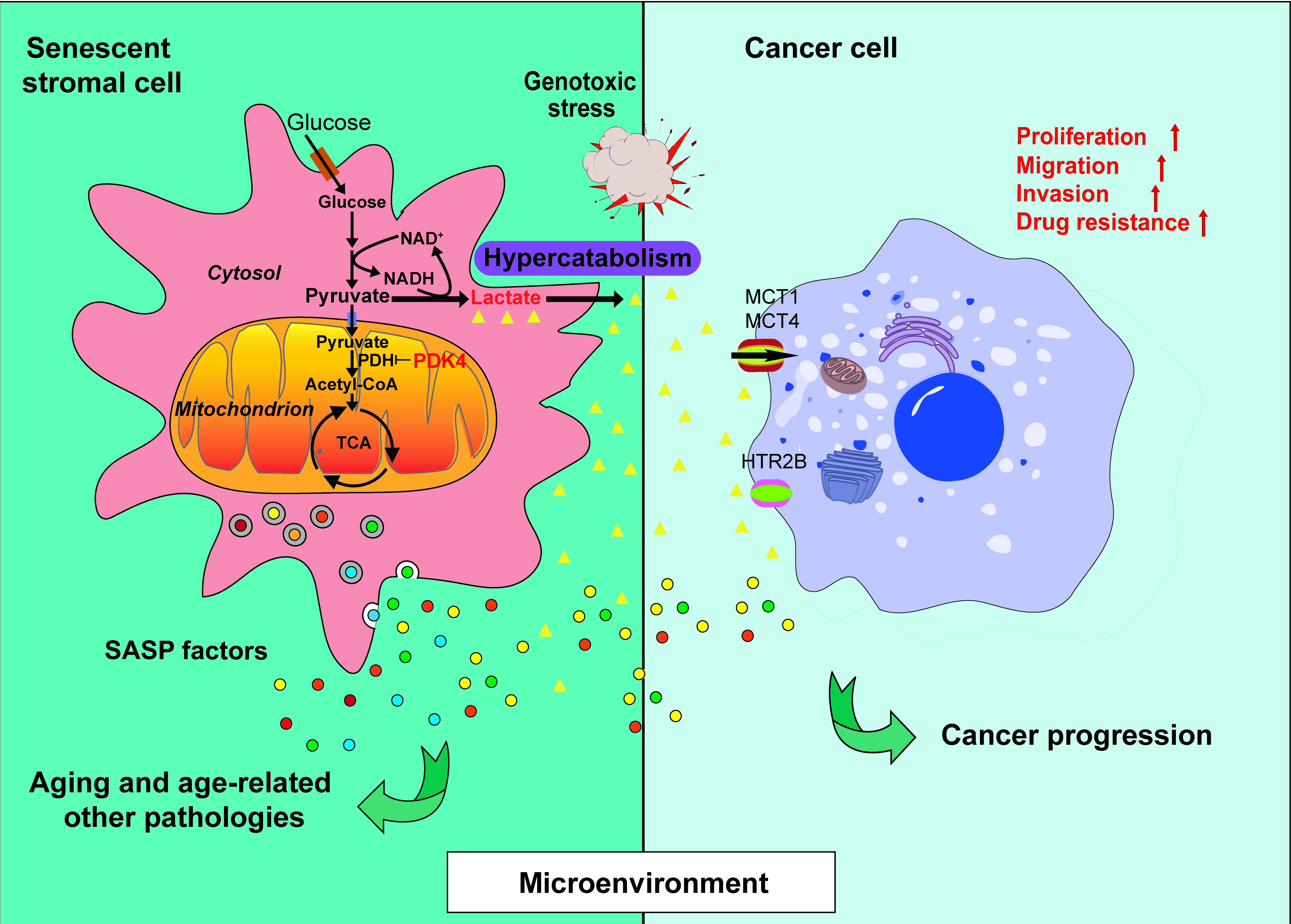 圖注:?衰老細胞PDK4介導的代謝重編程和乳酸富集型微環境對于癌癥等增齡性疾病的影響