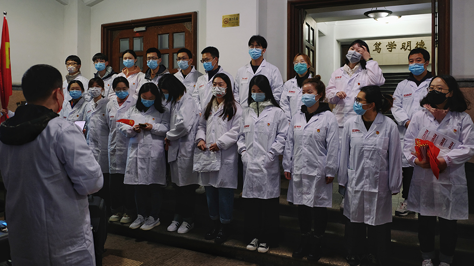 在簡短的出征儀式上,營養與健康所核酸檢測志愿者臨時黨支部書記吳小霞帶領大家重溫入黨誓詞。志愿者代表王永強發言,表達了對此次守“滬”行動的感想和決心。全體志愿者一同高呼,“抗疫有我、不負青春!”