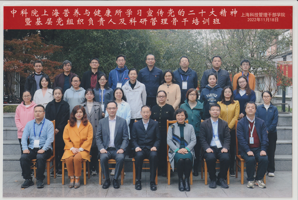 為深入學習黨的二十大精神,結合年度干部教育培訓計劃,11月18日至19日,營養與健康所在上海科技干部管理學院組織舉辦學習宣傳黨的二十大精神暨科研管理骨干及基層黨組織負責人培訓班。研究所領導班子,“兩委”委員,所務委員,科研骨干代表,中層領導人員,黨支部書記等40余人參會,上海科技干部管理學院黨委書記張艷林出席開班式并致歡迎詞。培訓班由紀委書記曹永主持。