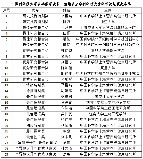 經評審,最終評選出口頭報告類獎項15名、墻報類獎項7名、科研圖片類獎項3名。其中,營養與健康所徐慕晗同學的《嗜中性粒細胞塑造脾臟微環境抑制T細胞抗乳腺癌免疫應答》和浙江大學陳浪同學的《Receptor-interacting protein kinase 2 as an immunotherapy target in pancreatic cancer》獲研究報告特別獎;營養與健康所馬雪晴同學的《合成生物學產業發展現狀與企業專利布局》和沈碧寒同學的《A systematic assessment of deep learning methods for drug response prediction: from in vitro to clinical applications》獲墻報特別獎。
