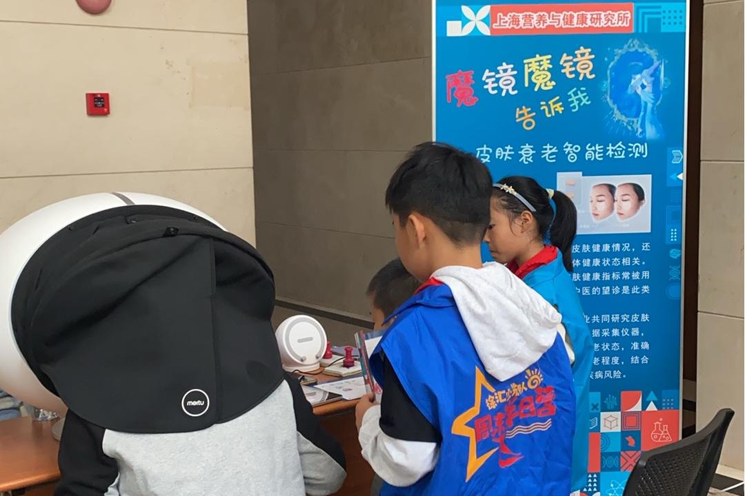 現(xiàn)實(shí)世界里的“魔鏡”也許無法告訴大家誰是世界上最美麗的人,但它可以快速精準(zhǔn)檢測皮膚衰老狀態(tài),結(jié)合大數(shù)據(jù)分析,評估個(gè)體衰老程度,為預(yù)測潛在疾病風(fēng)險(xiǎn)提供參考。其背后的原理是皮膚狀態(tài)可能與多種疾病、精神及身體健康狀態(tài)相關(guān),在醫(yī)學(xué)研究中,各項(xiàng)皮膚健康指標(biāo)常被用于評估人體健康水平。中國科學(xué)院營養(yǎng)工程實(shí)驗(yàn)室皮膚健康部在科普現(xiàn)場設(shè)置檢測儀器,其強(qiáng)大的功能吸引了眾多科學(xué)愛好者在展臺周圍排起長隊(duì)等待檢測和體驗(yàn)。
