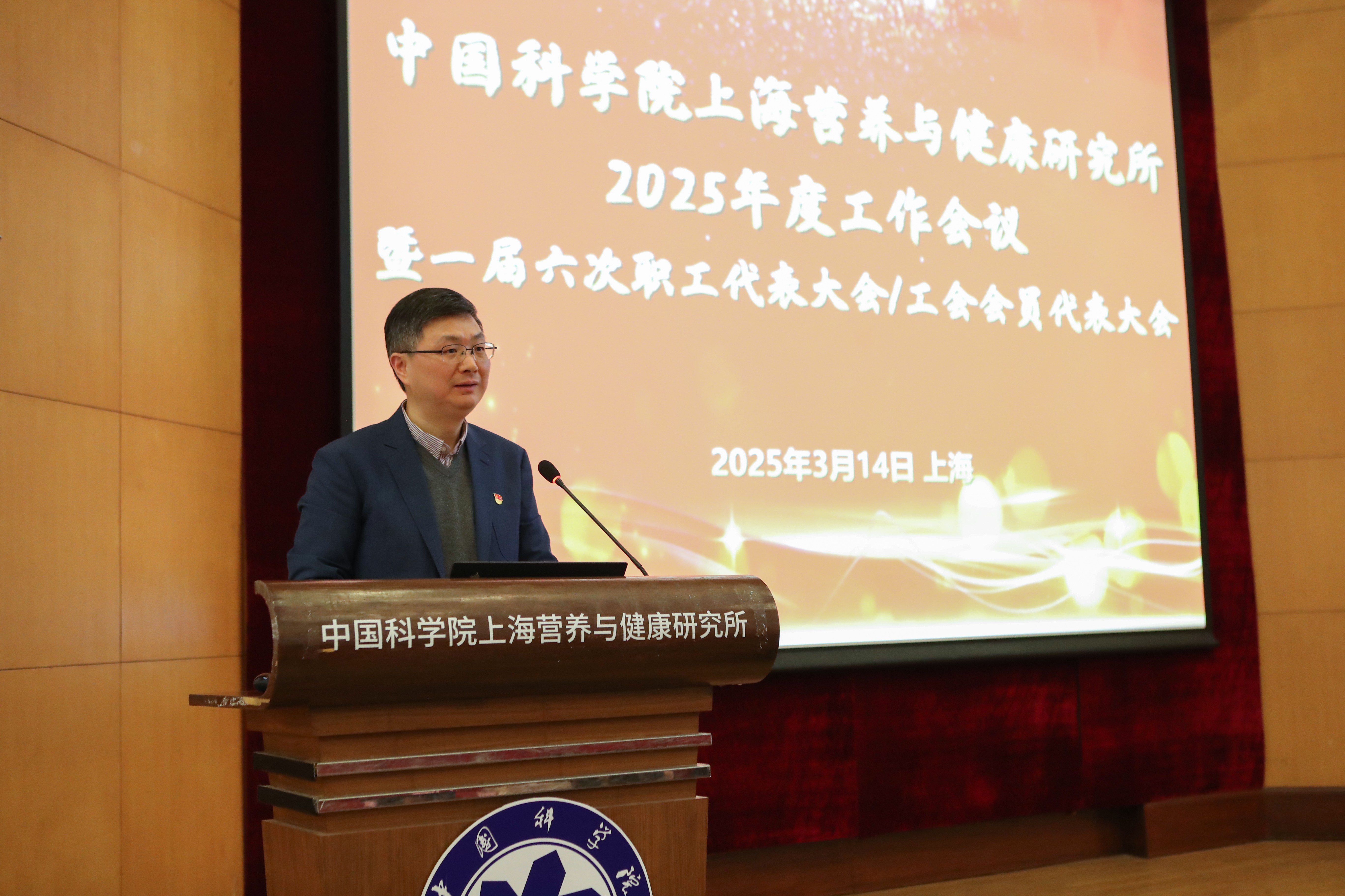 3月14日下午,中國科學院上海營養與健康研究所在生科大樓報告廳召開2025年度工作會議暨一屆六次職工代表大會/工會會員代表大會。