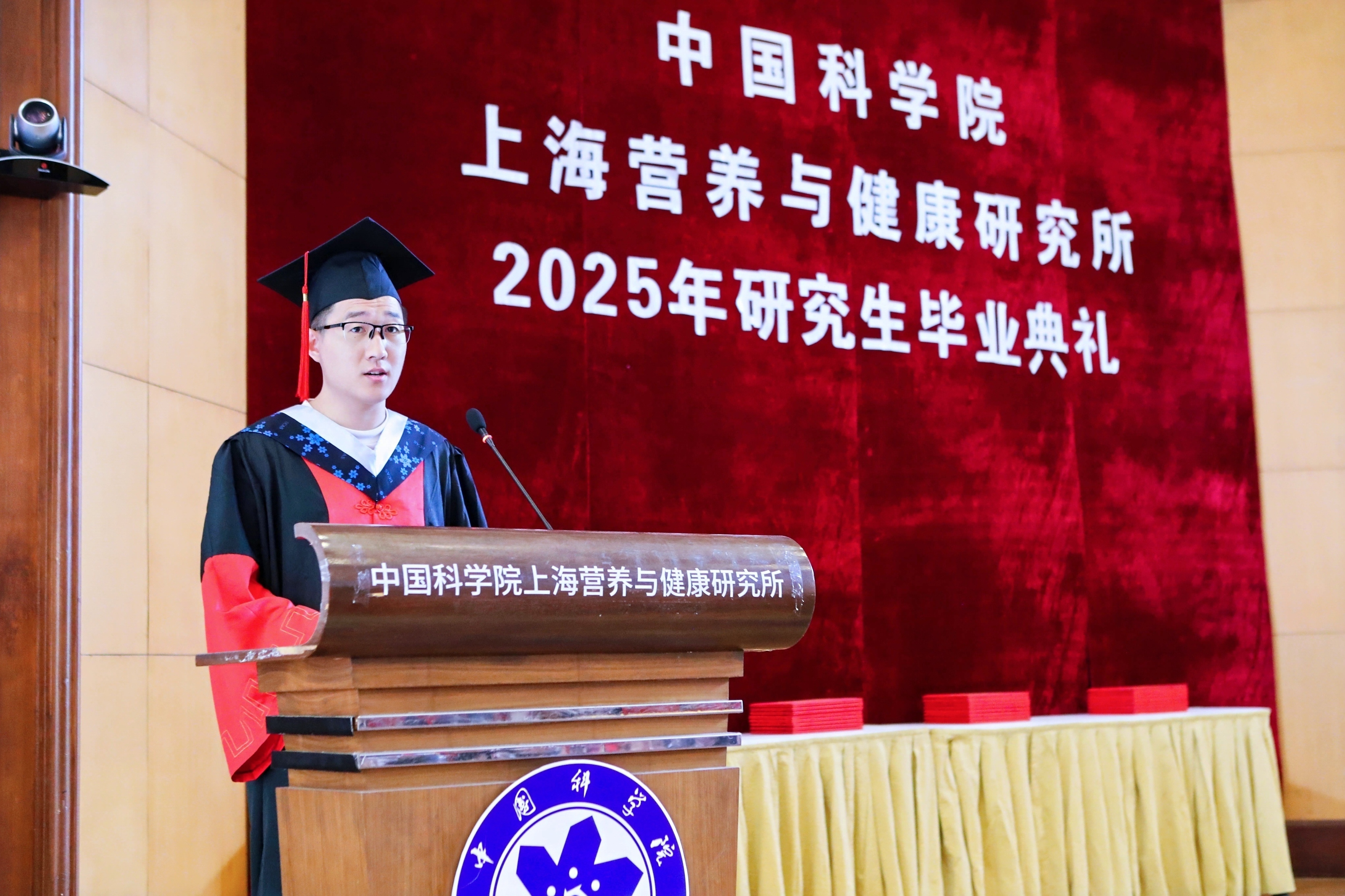 6月20日,中國科學院上海營養與健康研究所2025年研究生畢業典禮在生科大樓報告廳舉行。營養與健康所所長、黨委副書記汪思佳,副所長、學位評定委員會主席胡國宏,所務委員、學位評定委員會副主席邵振,學位評定委員會委員孔祥銀、王躍祥,導師代表熊燕、黃濤、王振,2025屆畢業生與畢業生親友、研究生處教育管理干部等100余人齊聚一堂,共同參與了這一盛典。畢業典禮由邵振主持。